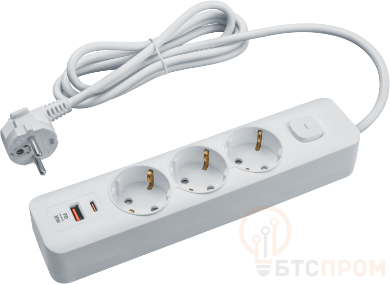 Удлинитель 3х3м с заземл. 16А IP20 95 688 NPE-USB06-03-300-ESC-3X1-PD20W USB-C + USB-A с выкл.бел. NAVIGATOR 95688