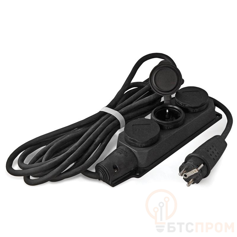 Конструкция включает три розетки с заземляющими контактами, рассчитанные на суммарную нагрузку до 16А (3.7 кВт). Степень защиты IP44 гарантирует устойчивость к брызгам воды и попаданию твердых частиц, что делает его пригодным для использования в сложных погодных условиях. Кабель типа КГ сохраняет гибкость и прочность при низких температурах. Наличие защитных крышек на розетках предохраняет их от пыли и влаги в нерабочем состоянии, продлевая срок службы.