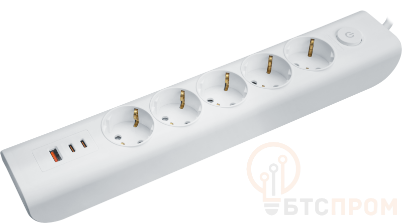 Корпус выполнен в белом цвете и оборудован выключателем со световой индикацией, позволяющим полностью обесточить все разъемы одним щелчком. Устройство идеально подходит для дома, офиса или мастерской, где требуется подключить компьютерную технику, бытовые приборы, инструмент и одновременно заряжать смартфоны или планшеты. Наличие заземления и защитных шторок повышает безопасность использования. Этот удлинитель сочетает в себе функциональность, удобство и современный дизайн.