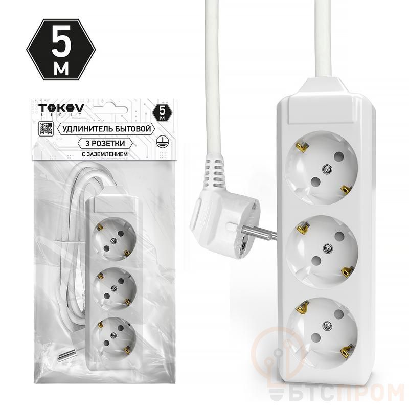 Удлинитель 3х5м с заземл. 10А 3х1.5 TOKOV LIGHT TKL-C01-BU3-5-1.5-Z фото в каталоге от BTSprom.by