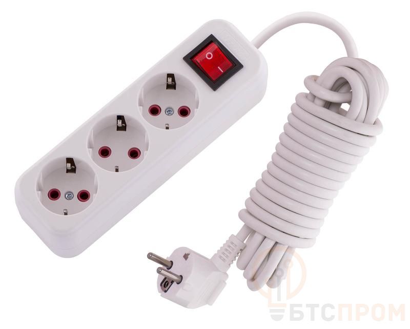 удлинитель 3х5м с заземл. 16а ip20 пвс 3х1 с выкл. космос yksm5m-3g-z-v(k) от BTSprom.by