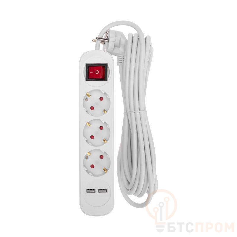 Удлинитель REXANT предназначен для подключения электрических приборов, когда недостаточно стандартной длины шнура для питания от стационарных розеток. Наличие 3 гнезд позволяет одновременно подключить несколько электроприборов. Каждое гнездо имеет заземление, что гарантирует безопасность при использовании. Универсальные розетки обеспечивают возможность подключения вилок как российского, так и европейского стандарта. Также предусмотрено два USB разъема. Удлинитель оснащен защитными шторками, которые предназначены для предотвращения случайного попадания пыли, влаги или посторонних предметов в гнезда удлинителя, что способствует долговечности самого устройства и подключенных к нему приборов, а также обеспечивает защиту от поражения электрическим током. На корпусе устройства располагается выключатель, который позволяет при необходимости легко выключить или включить все устройства одновременно. Мощность – 3500Вт. Сечение провода – 3х1,0мм2. Тип вилки – угловая. Цвет удлинителя – белый.