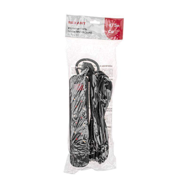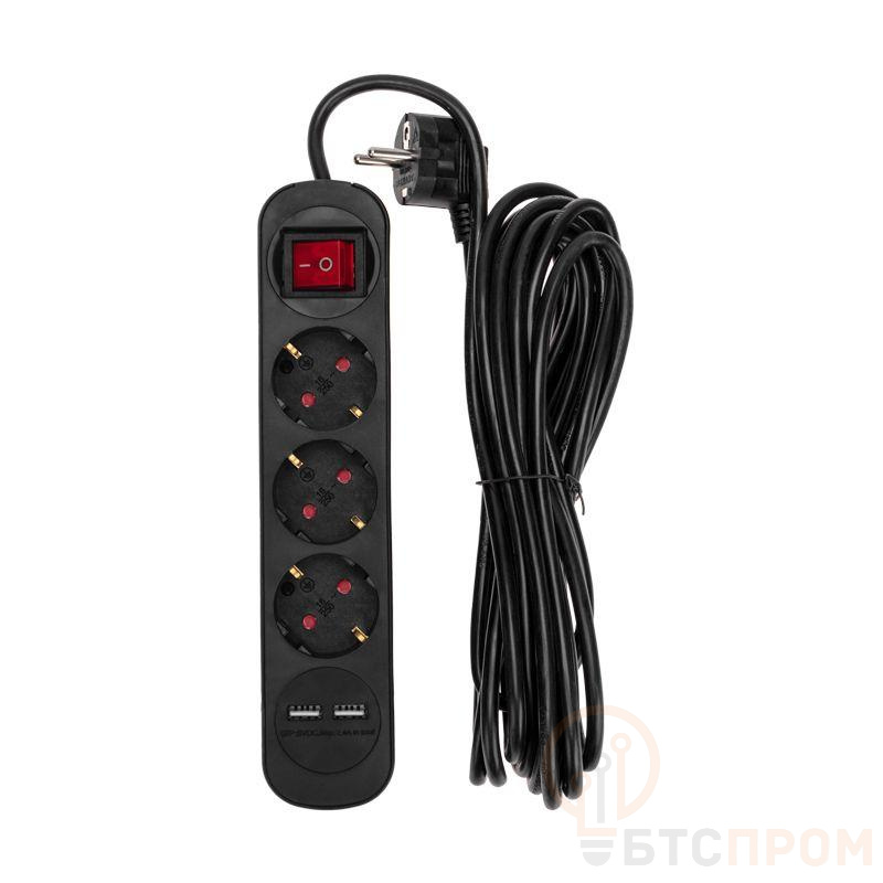 Удлинитель 3х5м с заземл. STANDARD 2хUSB 3х1кв.мм с выкл. черн. Rexant 13-4023 фото в каталоге от BTSprom.by