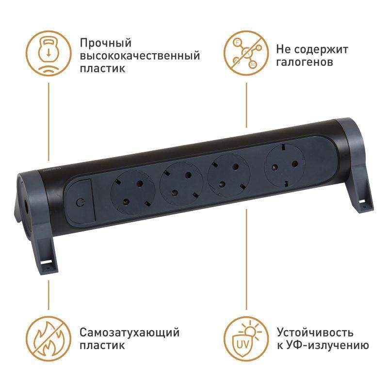 Удлинитель 4-м 16А IP20 Комфорт 4х2P+E с поворотн. осн. без кабеля черн. Leg 694545 фото в каталоге от BTSprom.by