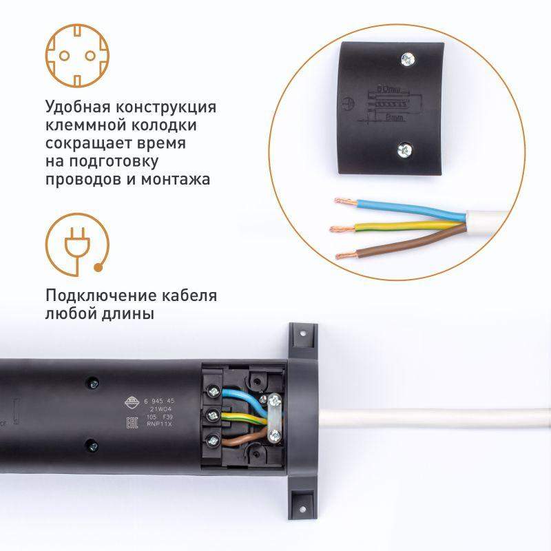 Предназначен для самостоятельного создания удлинителя с необходимой длиной кабеля. Инновационные плоские розетки удлинителя поддерживают эстетику дизайна, при этом обладают высокой степенью безопасности и препятствуют скоплению пыли в розетках, а также значительно сокращают время на его уборку. Цилиндрическая конструкция имеет поворотное основание, которое позволяет повернуть корпус удлинителя так, как вам нужно. Это значительно повышает удобство пользования. Удлинитель имеет кнопку включения с синей подсветкой. Конструкция удлинителя позволяет безбоязненно подключать мощные электроприборы до 3,86 кВт (16А). Корпус удлинителя выполнен из прочного немаркого высококачественного самозатухающего пластика, который не содержит галогенов и устойчив к ультрафиолетовому излучению. Всё это обеспечивает долговечное и безопасное использование удлинителя.