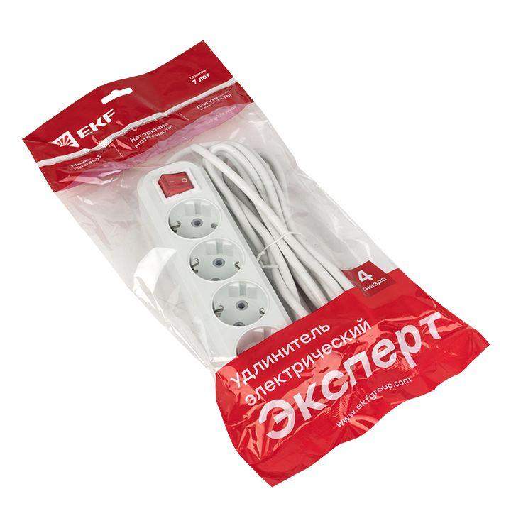 Удлинитель EKF серии Эксперт станет отличным решением, чтобы подключить до 4х приборов в нужном месте. Розетки расположены под углом 45°, что позволяет подключить много потребителей с разными типами вилок. Дополнен кнопкой со светодиодной подсветкой "Вкл/Выкл" для удобного отключения питания у всех подключенных устройств.
