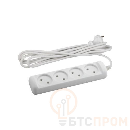 Бытовой удлинитель ЭРА UX-4-5m на 4 розетки, без заземления, с удлинённым проводом ШВВП 5 метров. Рассчитан для подключения простых бытовых приборов стандартной мощности. Максимальная нагрузка - 6 A/ 1300 Вт. Базовый белый цвет, аккуратный дизайн с закруглёнными углами. Для комфорта и безопасности гнёзда слегка "утоплены" в корпус. Изготовлен из надёжного полипропилена со специальными антипиренами, препятствующими горению.
