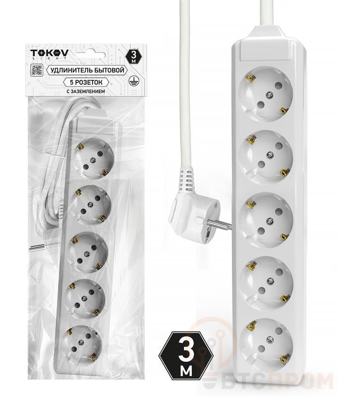 Удлинитель 5х3м с заземл. 10А 3х1.5 TOKOV LIGHT TKL-C01-BU5-3-1.5-Z фото в каталоге от BTSprom.by