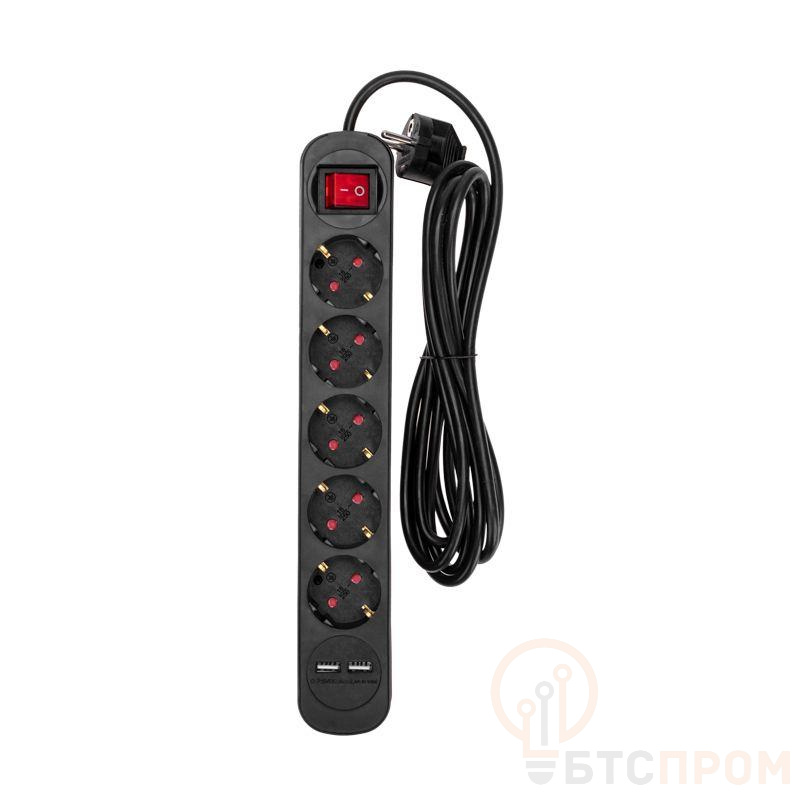 Удлинитель REXANT предназначен для подключения электрических приборов, когда недостаточно стандартной длины шнура для питания от стационарных розеток. Наличие 5 гнезд позволяет одновременно подключить несколько электроприборов. Каждое гнездо имеет заземление, что гарантирует безопасность при использовании. Универсальные розетки обеспечивают возможность подключения вилок как российского, так и европейского стандарта. Также предусмотрено два USB разъема. Удлинитель оснащен защитными шторками, которые предназначены для предотвращения случайного попадания пыли, влаги или посторонних предметов в гнезда удлинителя, что способствует долговечности самого устройства и подключенных к нему приборов, а также обеспечивает защиту от поражения электрическим током. На корпусе устройства располагается выключатель, который позволяет при необходимости легко выключить или включить все устройства одновременно. Мощность – 3500Вт. Сечение провода – 3х1,0мм2. Тип вилки – угловая. Цвет удлинителя – черный.
