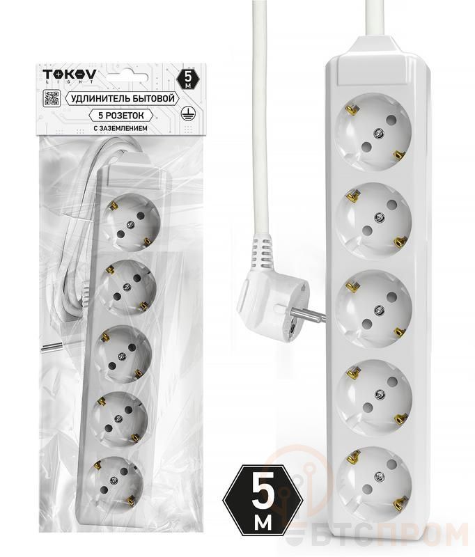 Удлинитель 5х5м с заземл. 10А 3х1.5 TOKOV LIGHT TKL-C01-BU5-5-1.5-Z фото в каталоге от BTSprom.by