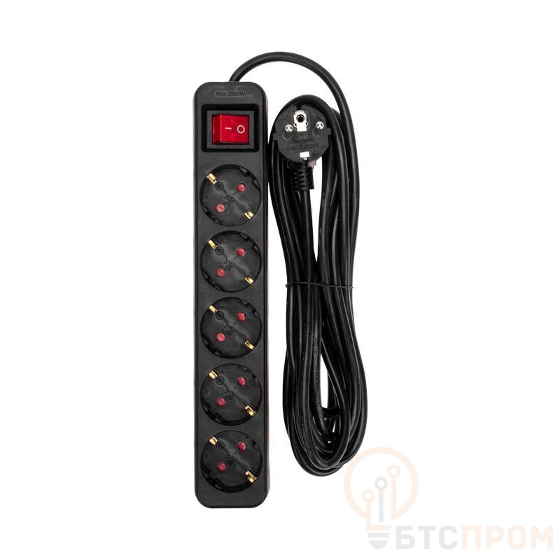 –Удлинитель 5х5м с заземл. STANDARD 3х1кв.мм с выкл. черн. Rexant 13-4039