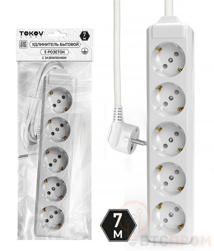 Удлинитель 5х7м с заземл. 10А 3х1.5 TOKOV LIGHT TKL-C01-BU5-7-1.5-Z