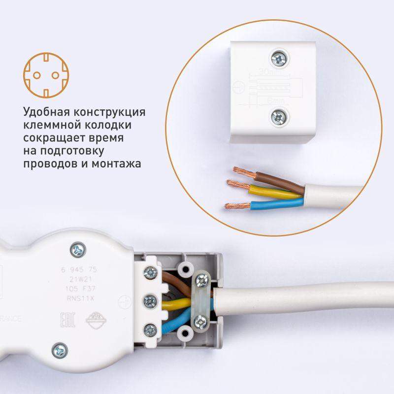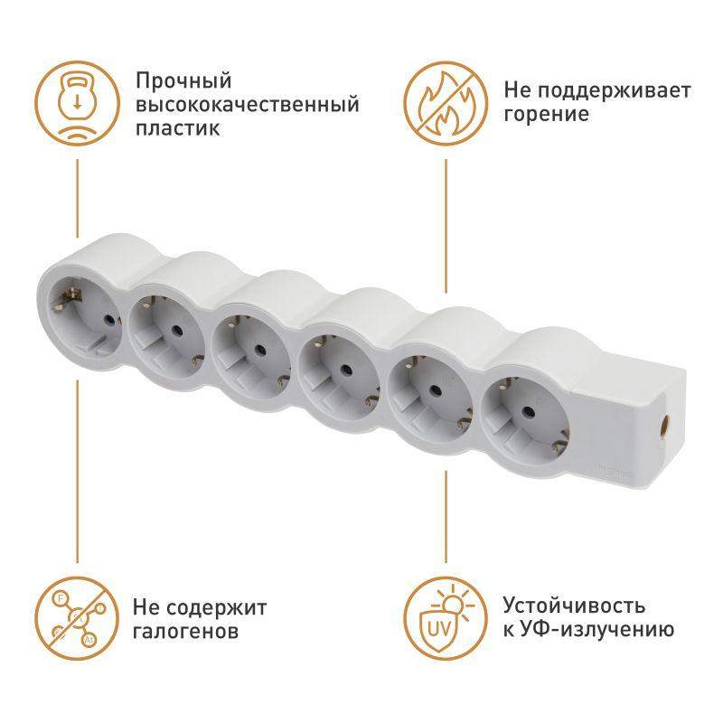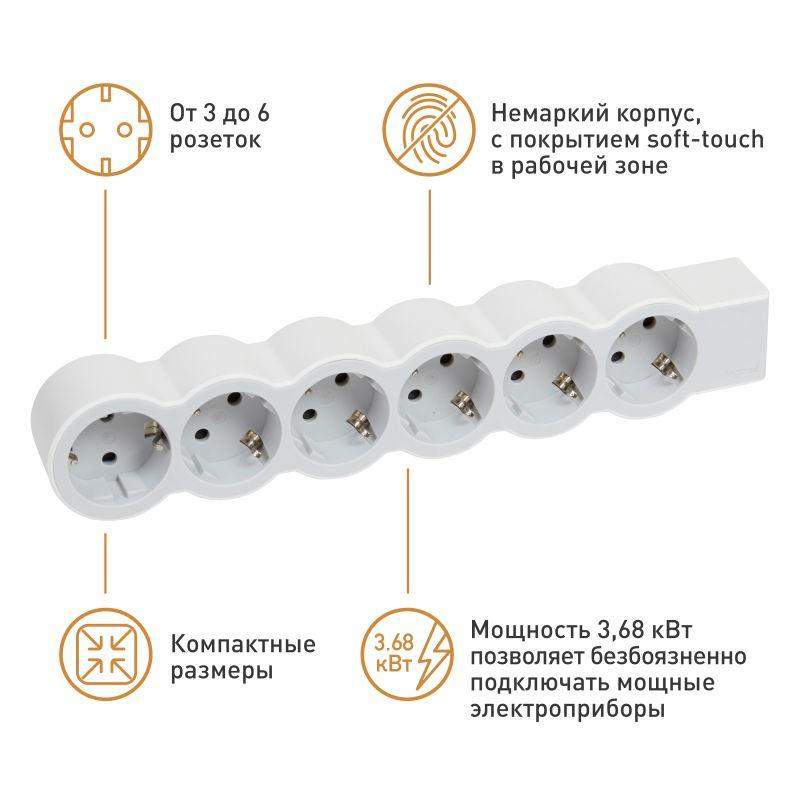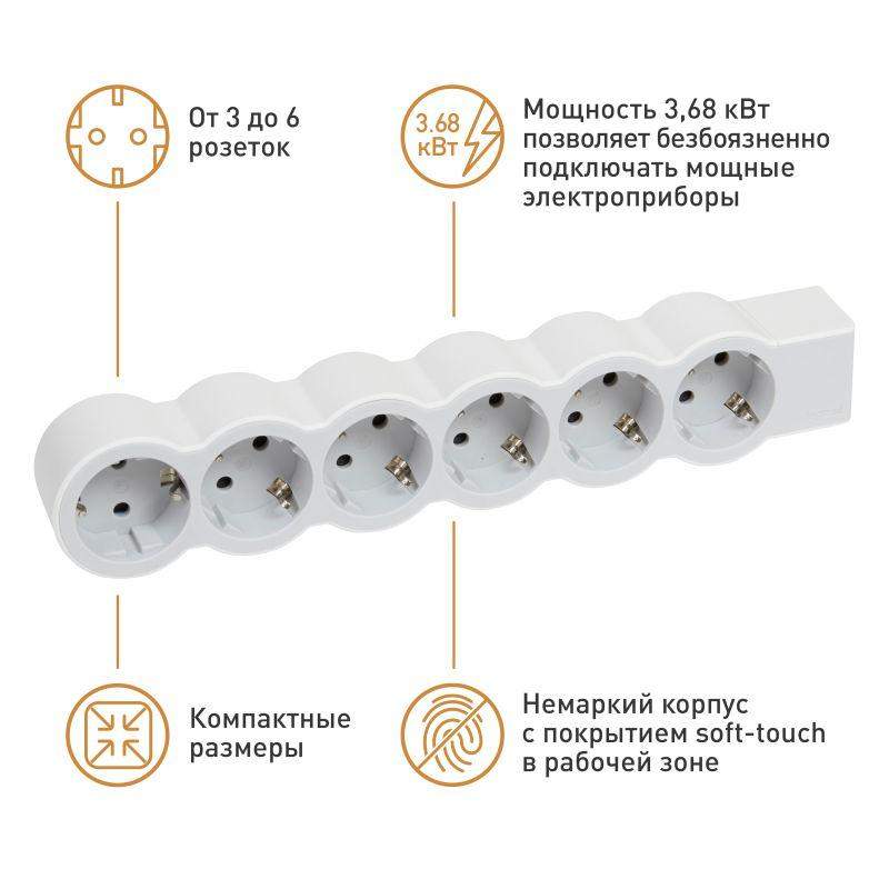 Предназначен для самостоятельного создания удлинителя с необходимой длиной кабеля. Конструкция позволяет безбоязненно подключать мощные электроприборы до 3,86 кВт (16А). При этом он обладает компактными размерами, позволяющими размещать удлинитель в ограниченном пространстве (например, под мебелью). Корпус выполнен из прочного немаркого двухкомпонентного материала с покрытием soft-touch. Все розетки оснащены защитными шторками, которые ограничивают доступ к токоведущим контактам. Высококачественный самозатухающий пластик корпуса не содержит галогенов, устойчив к ультрафиолетовому излучению. Всё это обеспечивает долговечное и безопасное использование.
