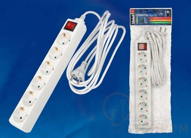 Удлинитель 6х3м с заземл. 16А IP20 S-GCD6-3B с выкл. Uniel 02939 фото в каталоге от BTSprom.by