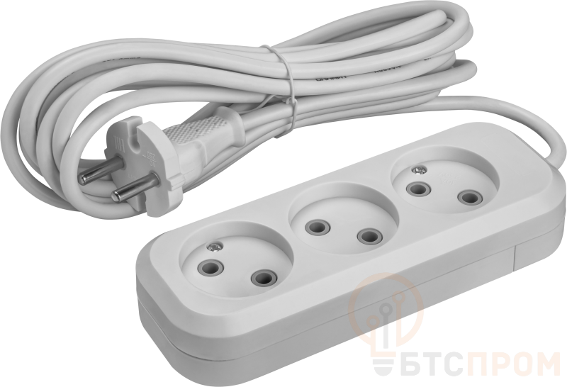 Корпус устройства выполнен из прочного не поддерживающего горение пластика, обеспечивающего безопасность и долговечность эксплуатации. Общая длина кабеля составляет 3 метра, что предоставляет удобство размещения оборудования вдали от стационарной розетки. Сетевой фильтр в конструкции отсутствует, что делает модель оптимальным выбором для питания техники, не требующей защиты от импульсных помех: настольных ламп, зарядных устройств, оргтехники и бытовых приборов.