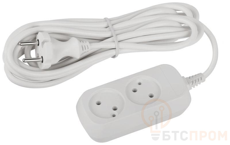 Удлинитель электрический Эра GREENLINE UDL-10-250 без заземления, на 2 розетки, провод 5м ПВС 2x0,75мм2. Рассчитан на максимальную мощность 10А/2200 Вт. Удлинитель станет Вашим надежным помощником, если любимые электроприборы находятся далеко от розеток. Корпус выполнен из ударопрочного и негорючего пластика (полипропилен). Модель удлинителя на 10А позволяет подключать бытовые приборы общей нагрузкой до 2200Вт.