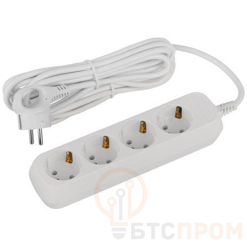 Удлинитель электрический Эра GREENLINE UDL-10-450-E с заземлением, на 4 розетки, провод 5м ПВС 3x0,75мм2. Рассчитан на максимальную мощность 10А/2200 Вт. Удлинитель станет Вашим надежным помощником, если любимые электроприборы находятся далеко от розеток. Корпус выполнен из ударопрочного и негорючего пластика (полипропилен). Вилка обеспечена кольцом для удобного извлечения ее из розетки. Модель удлинителя на 10А позволяет подключить бытовые приборы общей нагрузкой до 2200Вт.