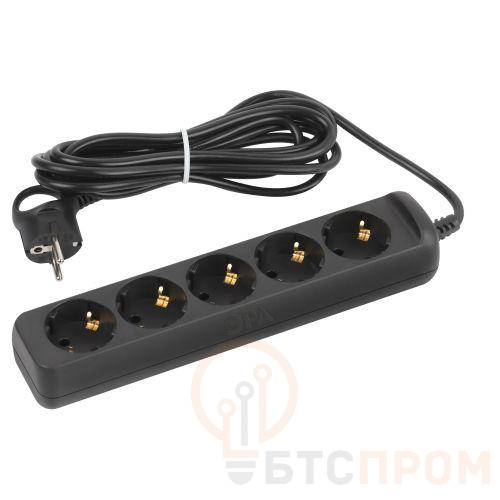 Удлинитель электрический Эра UX-5e-5m-B с заземлением, черный, 5 розеток. Провод ПВС, 3x0,75мм2, 5 м. Рассчитан на максимальную мощность 10А/2200 Вт. Удлинитель Эра станет Вашим надежным помощником, если Ваши любимые электроприборы находятся далеко от розеток. Провод в удлинителях Эра сделан из 100% меди, что делает его абсолютно пожаробезопасным. Корпус выполнен из ударопрочного и негорючего пластика (полипропилен). Вилка обеспечена кольцом для удобного извлечения ее из розетки. Модель удлинителя на 10А позволяет подключить бытовые приборы общей нагрузкой до 2200Вт. Дизайн удлинителя разработан в России командой Эра Style.