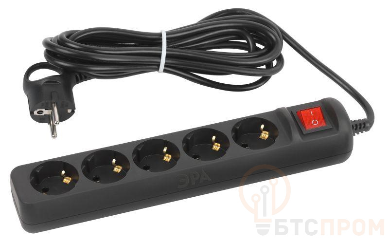 Удлинитель электрический Эра UX-5es-5m-B с заземлением, с выключателем, черный, 5 розеток. Провод ПВС, 3x0,75мм2, 5м. Рассчитан на максимальную мощность 10А/2200 Вт. Удлинитель Эра станет Вашим надежным помощником, если Ваши любимые электроприборы находятся далеко от розеток. Провод в удлинителях Эра сделан из 100% меди, что делает его абсолютно пожаробезопасным. Корпус выполнен из ударопрочного и негорючего пластика (полипропилен). Вилка обеспечена кольцом для удобного извлечения ее из розетки. Модель удлинителя на 10А позволяет подключить бытовые приборы общей нагрузкой до 2200Вт. Дизайн удлинителя разработан в России командой Эра Style.