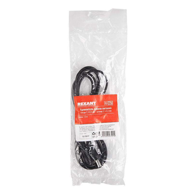 Удлинитель кабеля питания 1,5 метра. Используется для удлинения кабеля питания видеокамер, светодиодных лент и т.п. С одной стороны шнура находится штекер питания, с другой стороны гнездо питания. Основные характеристики: Тип разъема: гнездо 2,1*5,5 мм / штекер 2,1*5,5 мм; Длина: 1,5 м; Цвет: черный.