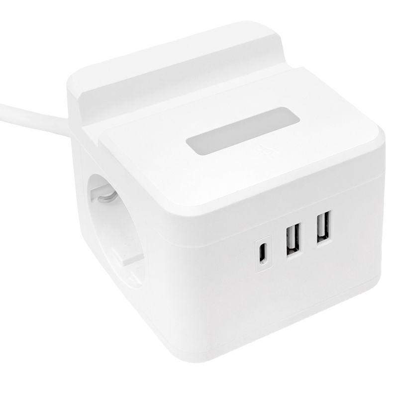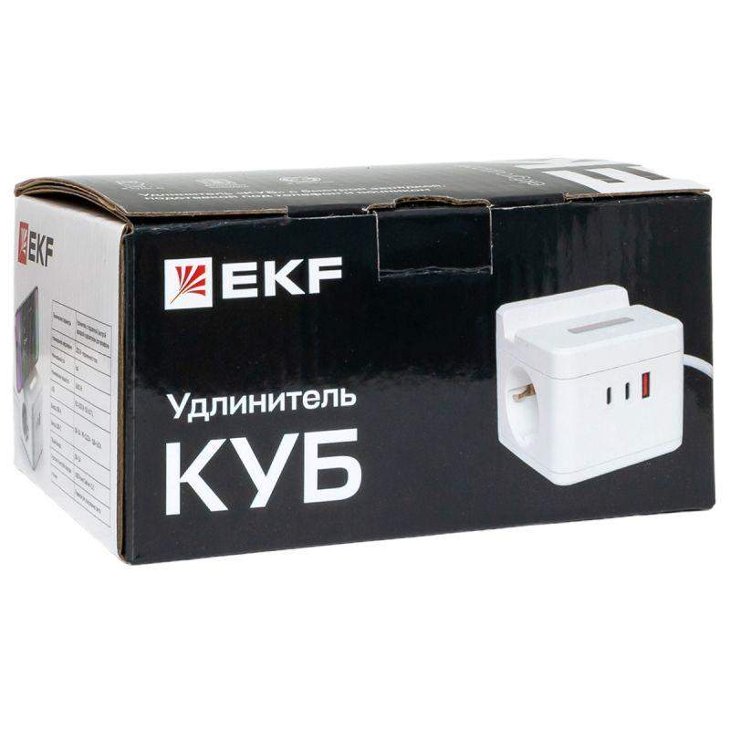 Удинитель EKF серии Куб предназначен для подключения к электрической сети всех видов бытовой и офисной техники, для зарядки и питания устройств через порты USB, а также для подсветки помещений в качестве ночника