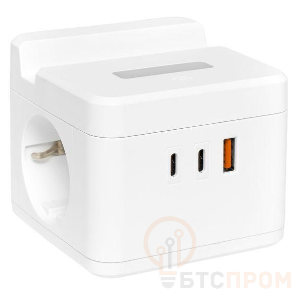 Удлинитель "Куб" 2х1.3м USB + 2Type C с быстрой зарядкой подставкой под телефон и ночником 1кв.мм EKF UBA-CUB-2-FC