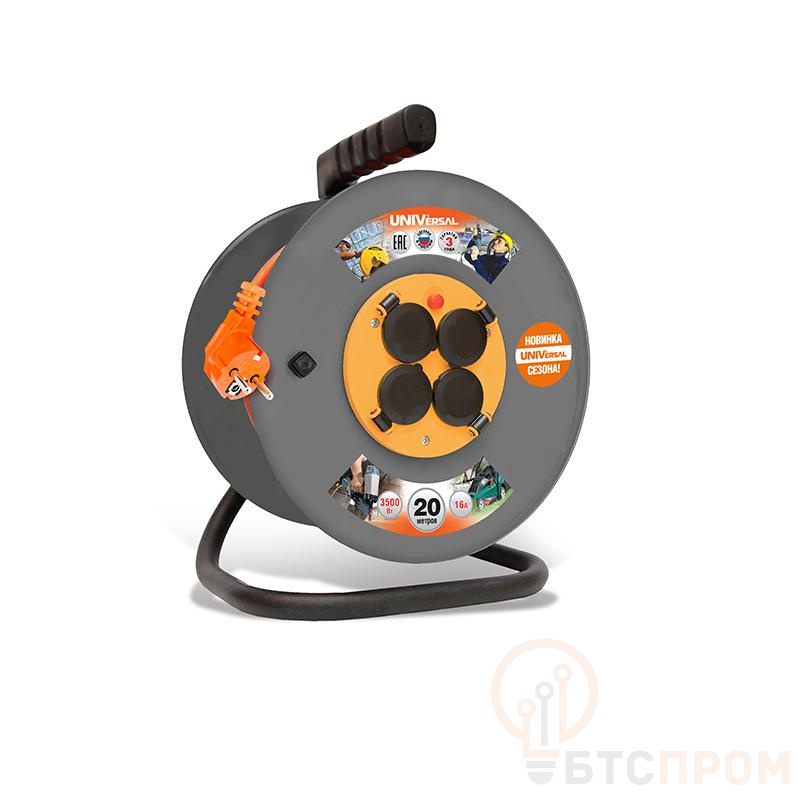 Удлинитель на катушке 4х20м 6А IP20 У10-014 ПВС 3х0.75 термозащита с защ. крышкой UNIVersal 1685 фото в каталоге от BTSprom.by