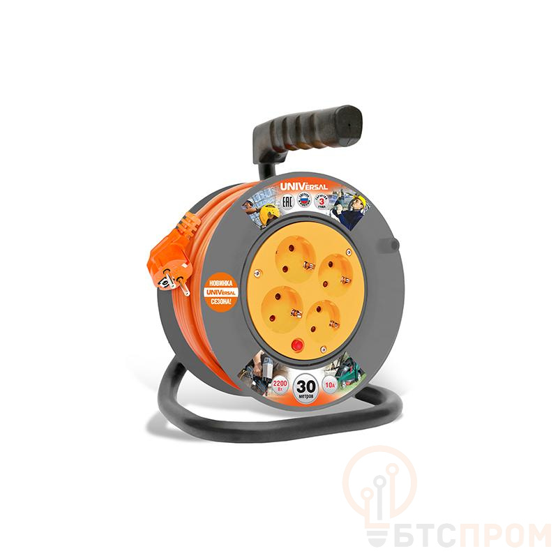 Удлинитель на катушке 4х30м с заземл. 6А IP20 У10-014 ПВС 3х0.75 термозащита UNIVersal 1686 фото в каталоге от BTSprom.by