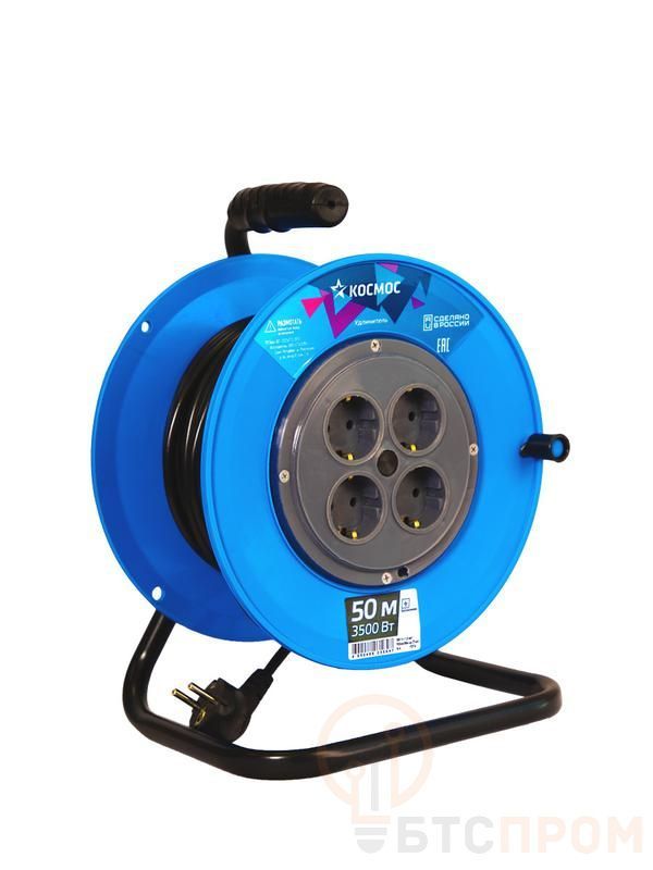 Удлинитель на катушке 50 метров на 4 гнезда. Кабель ПВС 3х1,5мм (с заземлением). Максимальная мощность подключения 3500 Вт (16А) благодаря сечению провода 1,5 мм.. Удлинители 16А подойдут для мощного прибора или инструмента, либо для одновременной работы нескольких инструментов средней мощности. Заземление обеспечит электрозащиту для приборов с металлическим корпусом. Удачный выбор для цеха или мастерской. Прочная стальная рама. Произведено в России.