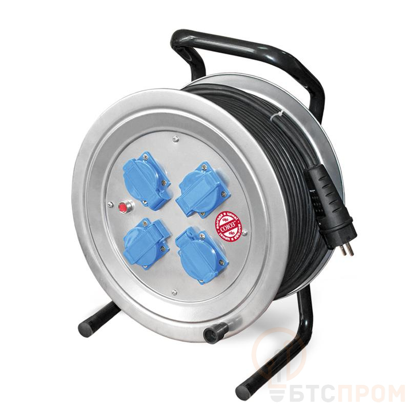–Удлинитель на катушке 4х50м с заземл. 16А IP44 3.7кВт КГ с защ. крышкой Союз 481S-3905.