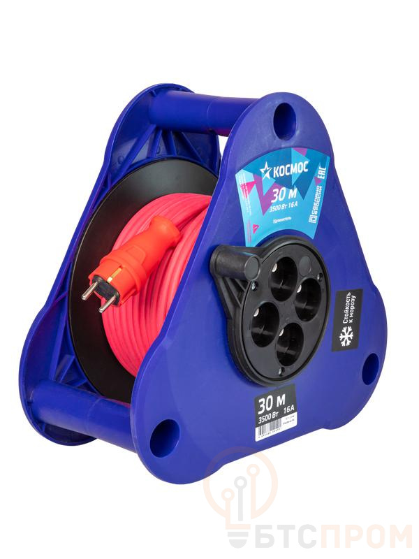 Удлинитель на треугольной катушке 4х30м без заземл. 16А IP44 3.5кВт КГ 2х2.5 УКП КОСМОС YKTKsm30m-4g(2.5)KG