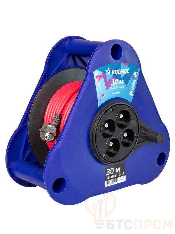 Удлинитель на треугольной катушке 4х30м без заземл. 16А IP44 3.5кВт ПВС 2х2.5 УКП КОСМОС YKTKsm30m-4g(2.5)