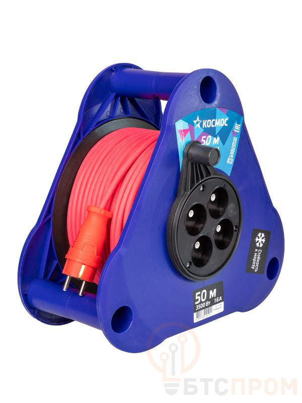 Удлинитель на треугольной катушке 4х50м без заземл. 16А IP44 3.5кВт КГ 2х2.5 УКП КОСМОС YKTKsm50m-4g(2.5)KG