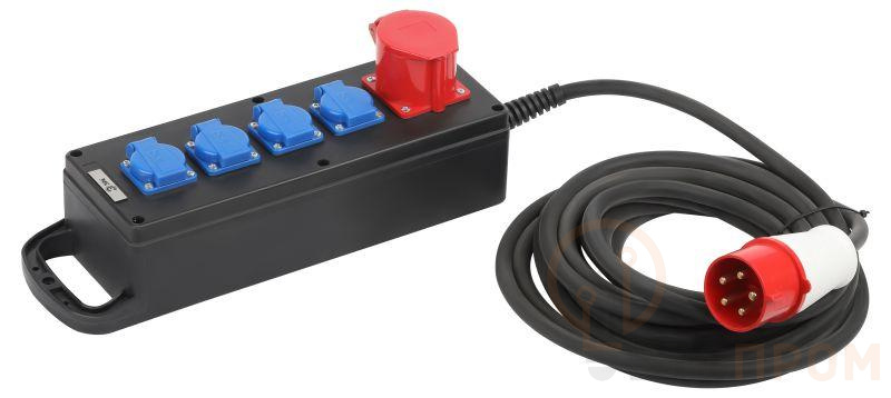 Удлинитель на каучуковой колодке 5х5м 32А IP44 IND380-U-5e-5х2.5-5m-IP44 1хCEE 5п 4хSchuko 380В КГ 5х2.5 Эра Б0057315
