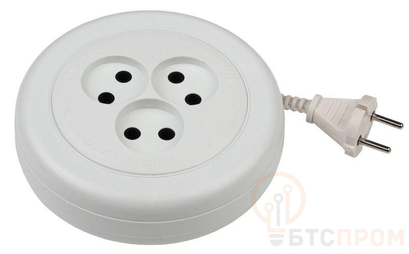 Бытовой удлинитель-рулетка с 3 гнёздами и длинным шнуром - 5 метров. Провод удобно прячется в корпус, что позволяет регулировать его длину при использовании прибора, а также компактно хранить удлинитель. Изготавливается в России из материалов, не поддерживающих горение. Надёжный двухжильный провод. Аккуратный круглый корпус. Позволяет одновременно подключать в сеть до 3 электроприборов с максимальной нагрузкой 6A/1300 Вт.