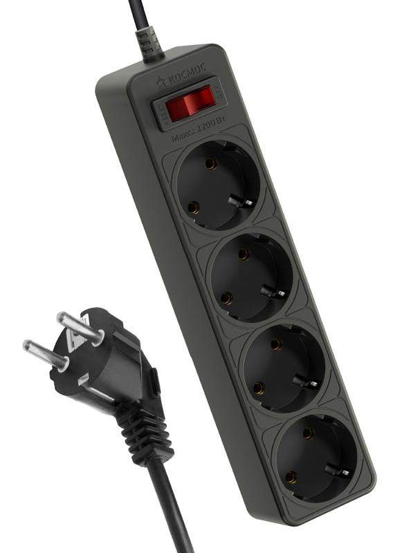 Удлинитель с сетевым фильтром 4х1.5м с заземл. 10А IP20 2.2кВт 3х0.75 с предохранителем с выкл. с индикатором сети КОСМОС FKsm1.5m-4g(B)