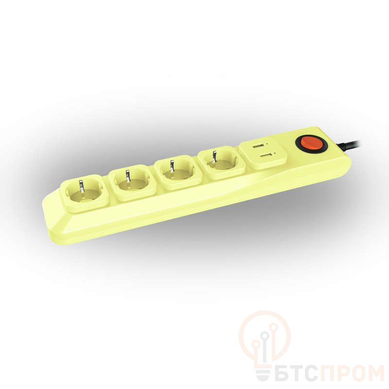 Удлинитель с сетевым фильтром 4х3м с заземл. 10А Lux SGSL5-3U IVORY 1хUSB 1А ПВС 3х0.75 защита от перенапряж. короткого замыкания Uniel UL-00001760