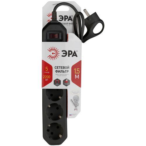 Удлинитель с сетевым фильтром 5х1.5м с заземл. 10А IP20 USF-5es-1.5m-B ПВС 3х0.75 с выкл. черн. Эра Б0019032