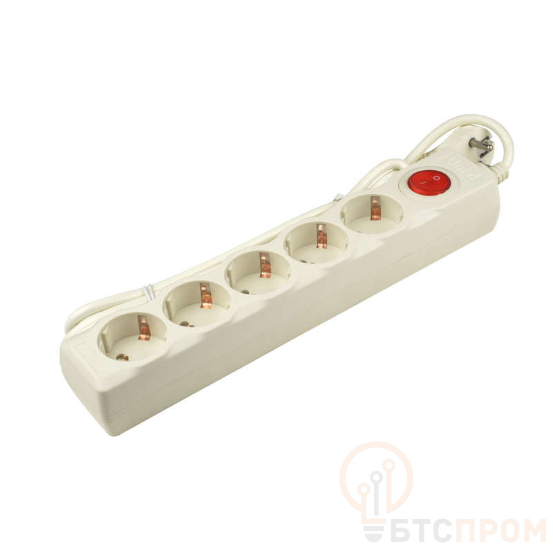 Удлинитель с сетевым фильтром 5х1.5м с заземл. 10А Universal SGSU5-1.5 IVORY ПВС 3х0.75 защита от перенапряж. короткого замыкания Uniel UL-00001742