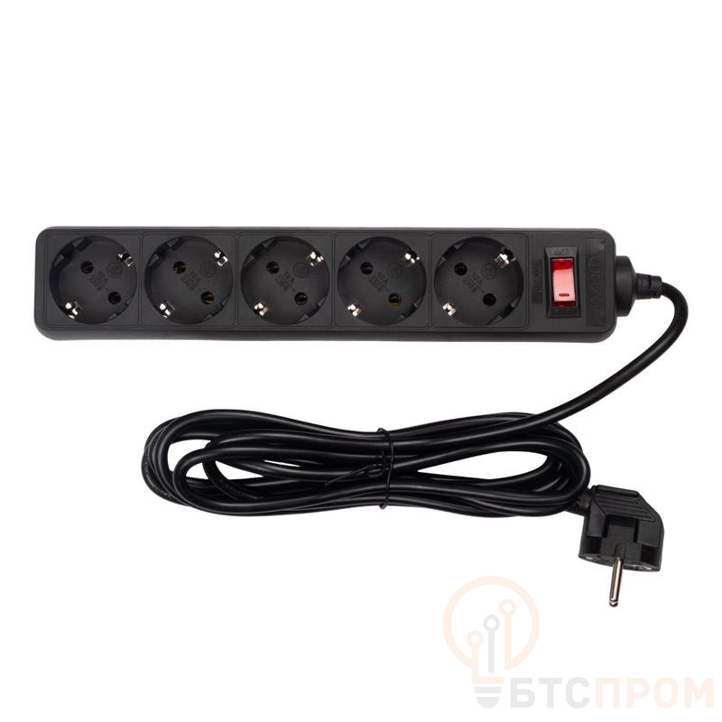 Удлинитель с сетевым фильтром 5х3м с заземл. 10А IP20 FOP-05GS-300 2.2кВт ПВС 3х0.75 с выкл. черн. ФАZА 5007642