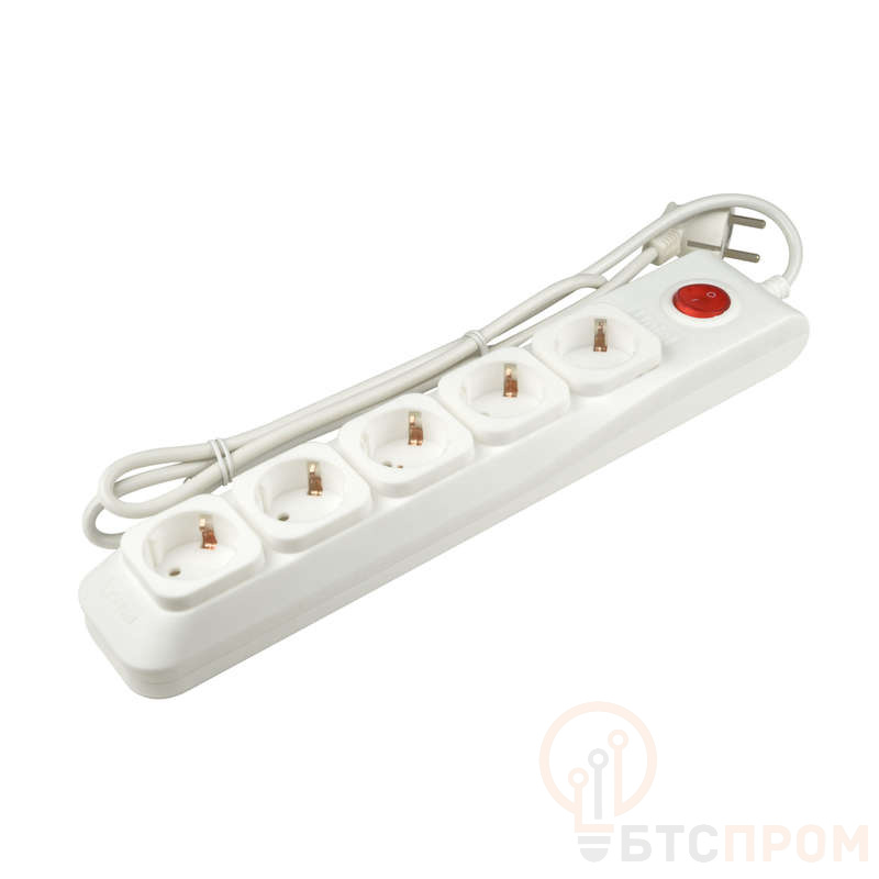 Удлинитель с сетевым фильтром 5х3м с заземл. 10А Lux SGSL5-3 WHITE ПВС 3х0.75 защита от перенапряж. короткого замыкания Uniel UL-00001753