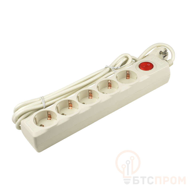Удлинитель с сетевым фильтром 5х3м с заземл. 10А Universal SGSU5-3 IVORY ПВС 3х0.75 защита от перенапряж. короткого замыкания Uniel UL-00001745