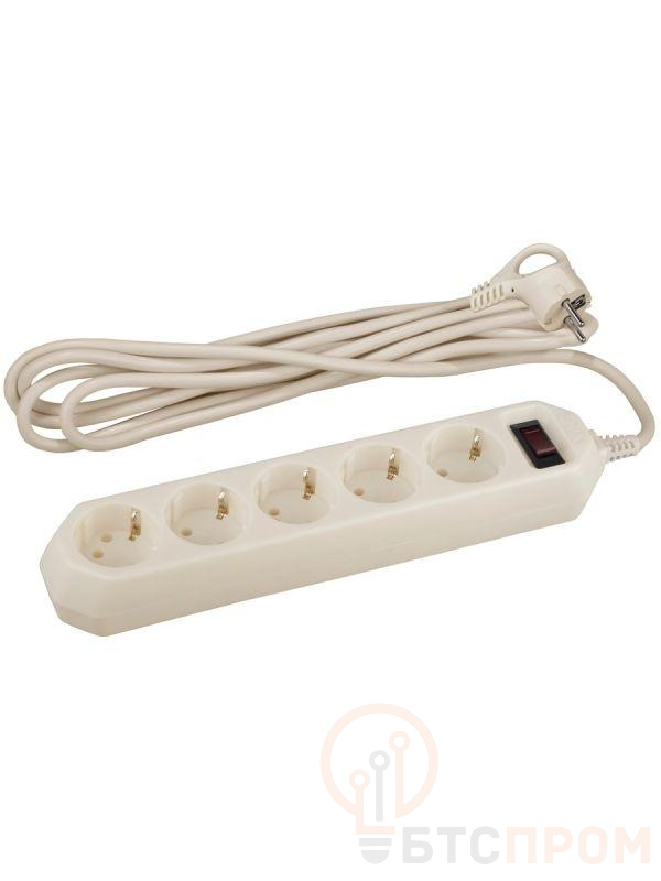Удлинитель с сетевым фильтром 5х5м с заземл. 10А IP20 USF-5es-5m-I ПВС 3х0.75 с выкл. сл. кость Эра Б0019739