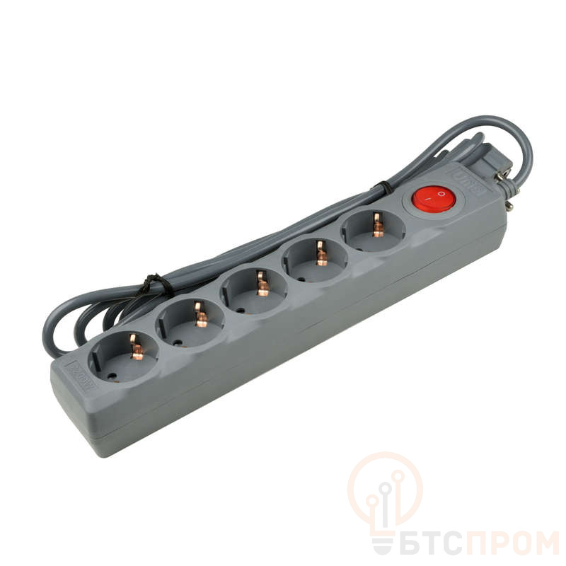 Удлинитель с сетевым фильтром 5х5м с заземл. 10А Universal SGSU5-5 GREY ПВС 3х0.75 защита от перенапряж. короткого замыкания Uniel UL-00001749