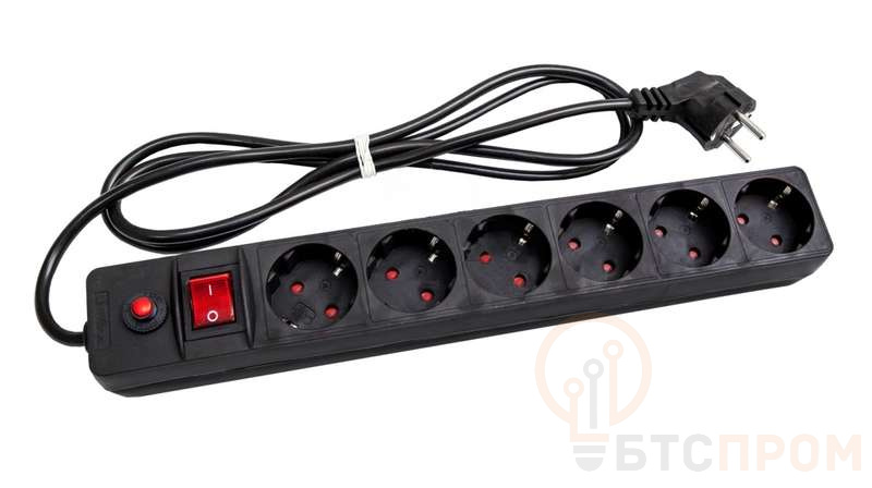 Удлинитель с сетевым фильтром 6х10м с заземл. 10А IP20 ПВС 3х0.75 защ. шторки черн. UNIVersal 967U-4010
