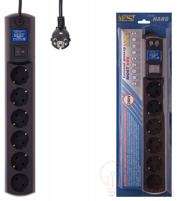 Удлинитель с сетевым фильтром MOST HV6 – это надежное решение для организации электропитания нескольких устройств на значительном расстоянии от розетки. Общая длина кабеля составляет 6 метров, что обеспечивает широкий радиус действия и удобство размещения оборудования.