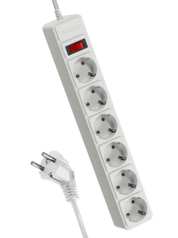 Удлинитель с сетевым фильтром 6х5м с заземл. 16А IP20 3.5кВт 3х1 с предохранителем с выкл. с индикатором сети бел. КОСМОС FKsm5m-6g(W)16A