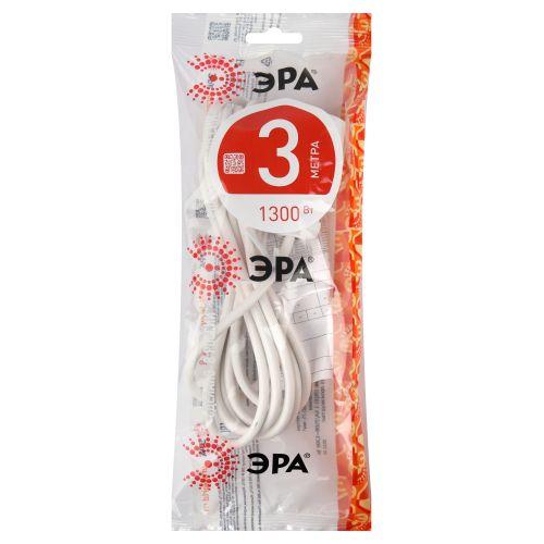 Удлинитель электрический Эра UX(6)-1-3m без заземления, 1 розетка, провод ПВС 2x0,75мм2 длиной 3 м. Рассчитан на максимальную мощность 6А/1300Вт. Удлинитель Эра станет Вашим надежным помощником, если Ваши любимые электроприборы находятся далеко от розеток. Модель удлинителя на 6А позволяет подключить бытовые приборы общей нагрузкой до 1300Вт. Дизайн удлинителя разработан в России командой Эра Style.