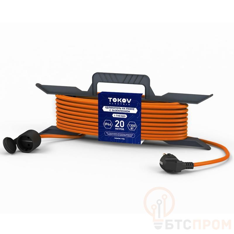 Удлинитель-шнур на рамке 1х20м с заземл. 6А IP44 3х0.75 с защ. крышкой TOKOV ELECTRIC TKE-SR20-075-Z