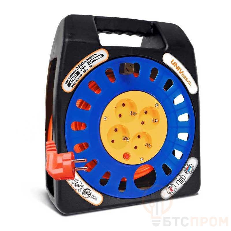 Удлинитель в закрыт. корпусе 4х30м 16А IP20 У16-012 ПВС 3х1.5 термозащита защ. шторки UNIVersal 9633882